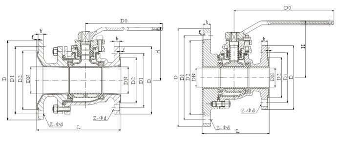 | DN(mm) | L | D | D1 | D2 | f | b | Z-Φd | Do | H |